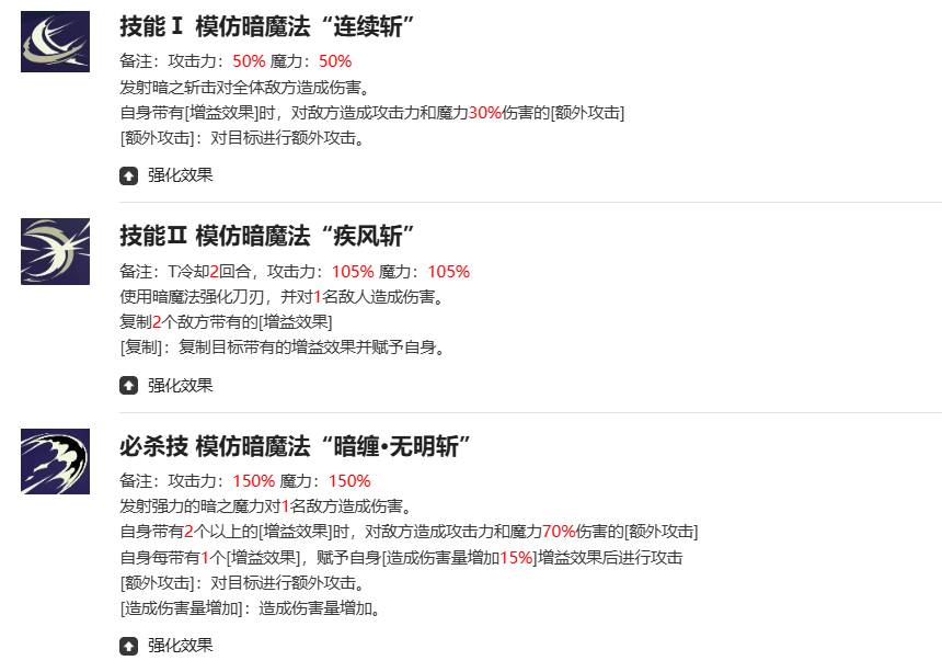 莱亚在游戏中的战斗适应性非常出色,无论是清理小怪还是对抗精英单位都游刃有余。他的第一个技能“连续斩”具备大范围伤害效果,适合应对密集敌人,在推进关卡或刷图时效率极高。第二个技能虽然表面看起来作用有限,实则拥有独特机制:可窃取敌方两个增益状态,这一特性在挑战高难度BOSS时尤为关键,能有效逆转战局。至于第三个技能,也就是玩家们常说的比烧鸡,不仅能造成高达150%攻击力的混合伤害,更会在目标携带增益效果时进一步提升输出,实现瞬间斩杀强力对手。