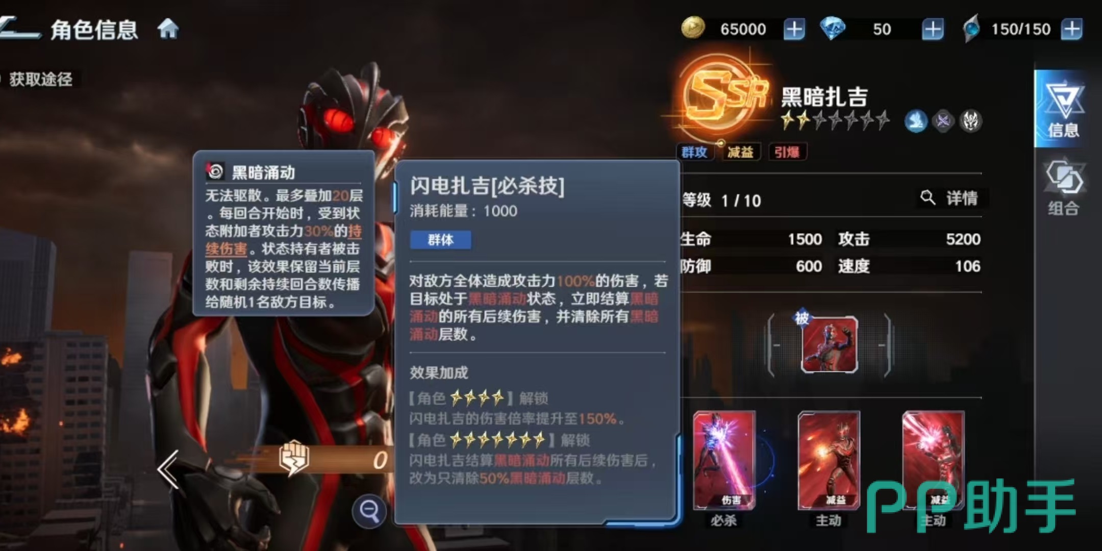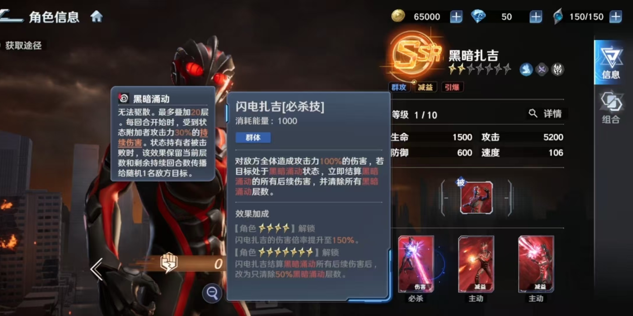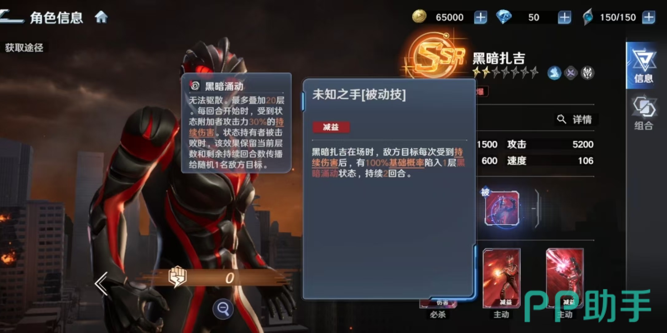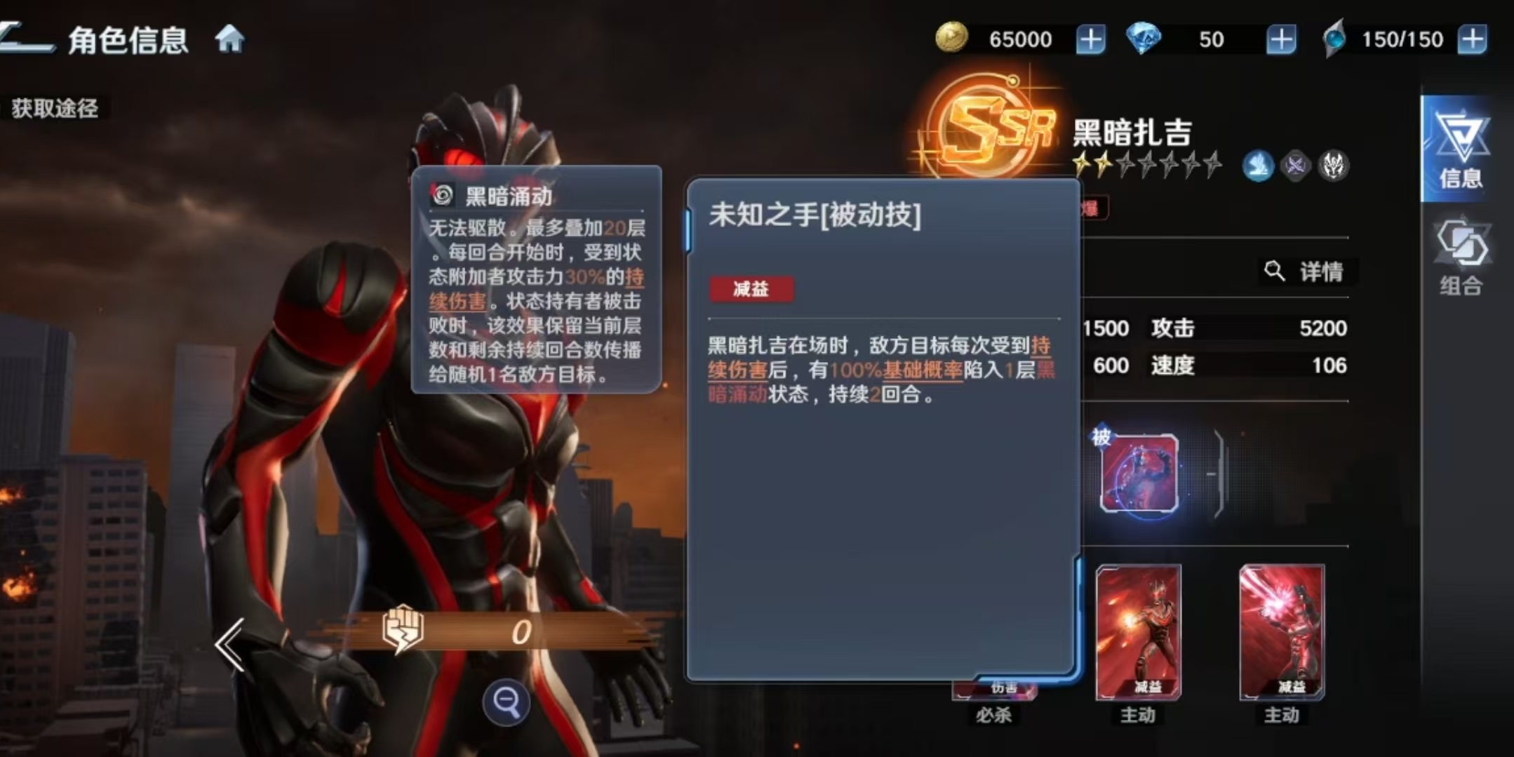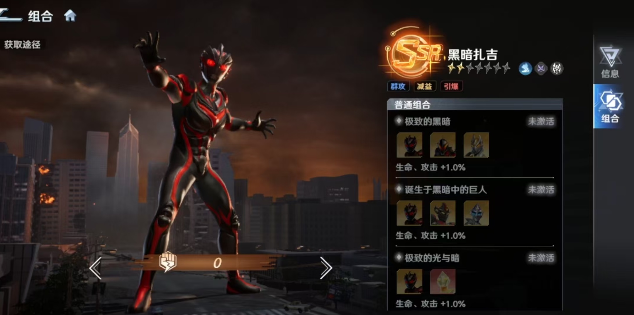 基于上述机制,黑暗扎吉的最优定位为持续伤害体系核心输出位。推荐搭配角色包括:强力型迪迦奥特曼(提供【燃烧】状态补充DoT)、达拉姆(具备稳定【燃烧】触发能力)、卡蜜拉(强化团队辅助与状态维持)以及芝盾(增强全队持续伤害承伤转化效率)。上述角色均能有效激活【未知之手】被动,形成高效联动闭环。