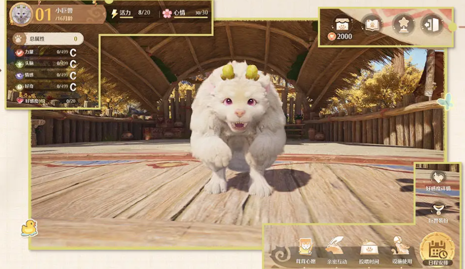 除设施互动外,小巨兽对视觉表达与肢体接触具有显著偏好:喜爱穿戴个性化装扮、享受头顶轻抚与温暖拥抱,亦会对空中飘落的限定美食产生积极反应。玩家还可与其共同参与轻度休闲小游戏“巨兽排排走”,强化日常陪伴感。小巨兽完整成长周期为16个月龄,期满将触发专属成年结局。值得注意的是,养育者与巨兽之间形成的羁绊具备延续性——再次吹奏木笛,将激活隐藏交互,收获专属惊喜回馈。