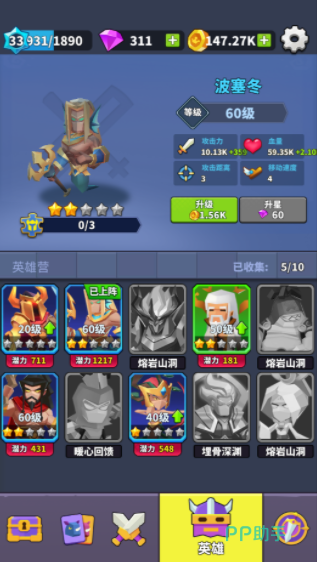 假如感觉这些英雄的能力不足的话,就可以通过消耗材料提升英雄的等级,星级越高,英雄的各项能力数值也会有所增长,但英雄只作为整个队伍的领导者,除了单个英雄角色之外,还有大量的小兵角色,需要在战斗的时候合理的排兵布阵,这样才能确保在对战过程中,能顺利击杀对方成员,赢得统治权,并且能收获到一些资源,提升角色。