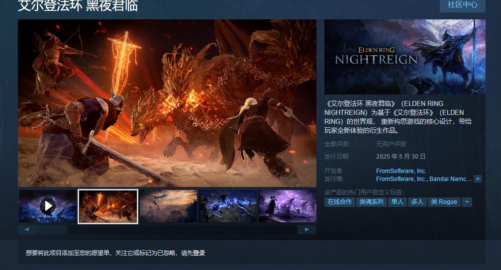 在steam平台上。艾尔登法环君夜降临的英文名字是:Elden Ring: Nightreign,玩家只需要输入英文名称就可以轻松的找到这款游戏,可以去体验一下游戏。