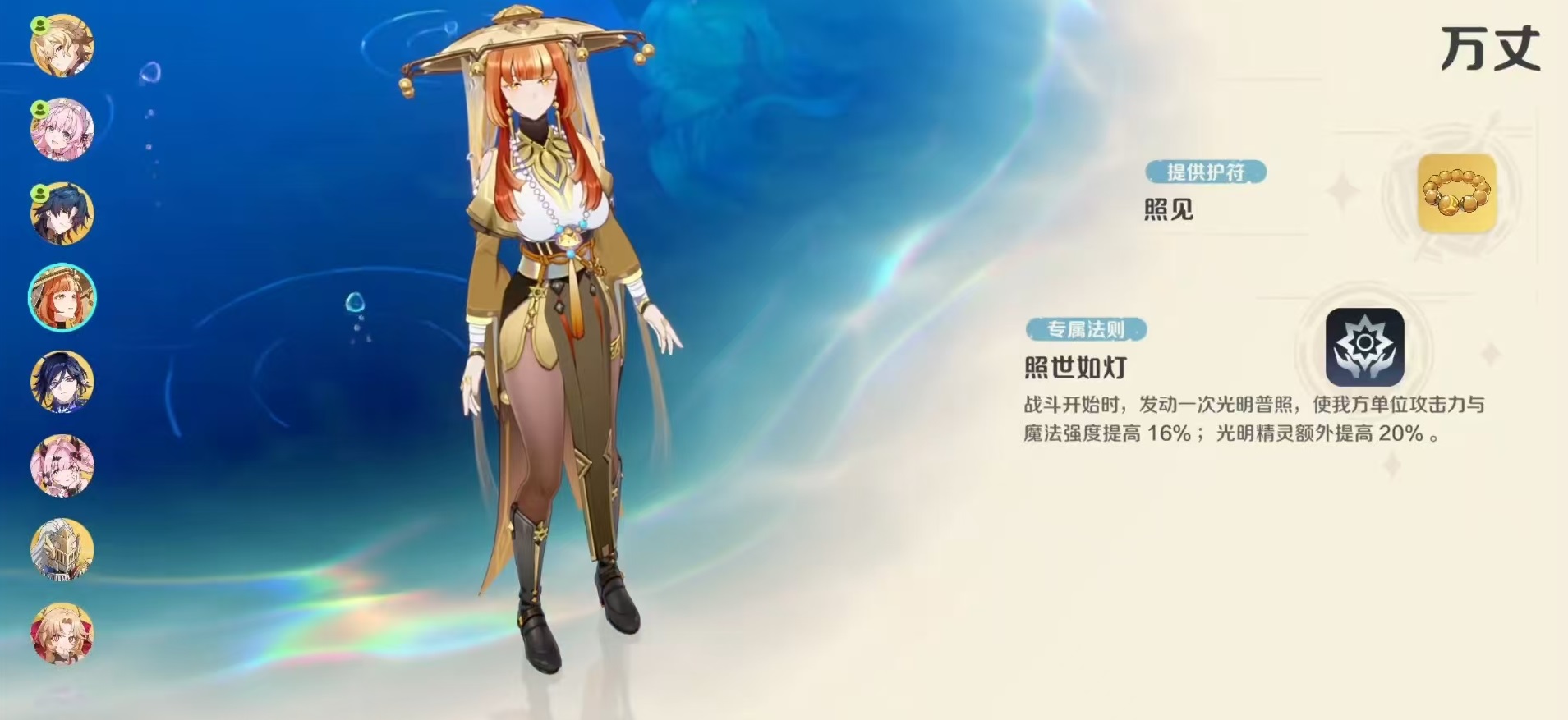 除刃之外,还有多位具备强力法则的心像可供选择。例如九明镜,其法则能为记忆篆录者提供专属护符,并使其在战斗开始时直接入场参战,省去召唤时间,抢占先机。帕拉雅雅的法则名为“与爱同行”,战斗开启时会投掷爱厌宝钻至战场中央,对所有敌方单位造成其生命上限20%的真实伤害,特别适合搭配前期爆发型阵容使用。而万丈的法则“光明普照”则能在开战瞬间大幅提升全队攻击力与魔法强度,且光明精灵还将获得额外增益,是光属性阵容的理想搭档。