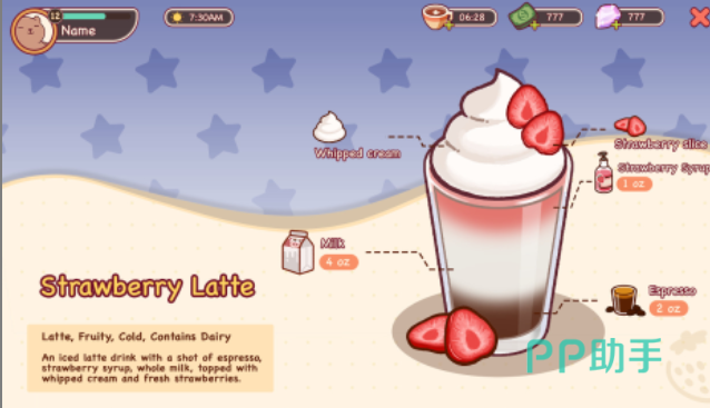 游戏核心玩法围绕饮品调配展开,涵盖经典意式咖啡与创意特调两大体系。从拿铁的绵密奶泡、卡布奇诺的黄金比例,到季节限定冷饮的冰晶层次,每款饮品均设定专属配方逻辑——包括基底选择、萃取时长、奶温控制及装饰步骤。操作界面采用卡通化视觉设计,交互简洁直观:拖拽原料、滑动温控条、点击打奶泡,三步即可完成一杯高完成度咖啡。系统对操作容错率友好,新手无需反复试错,即可稳定产出高评分饮品。