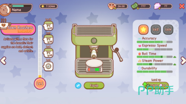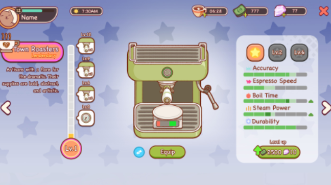 除饮品制作外,空间经营深度影响游戏进程。玩家可自由规划咖啡馆布局:更换木质吧台、悬挂手绘挂画、调整绿植位置、铺设复古地砖等,每一处细节都影响顾客停留时长与满意度数值。设备升级系统支持渐进式成长路径——购置全自动意式咖啡机可缩短萃取时间,添置商用冷饮机可解锁冰滴与氮气特调,加装智能烤箱则开放华夫饼、司康等轻食品类。经营策略与审美表达同步推进,让小店逐步成长为区域人气地标。