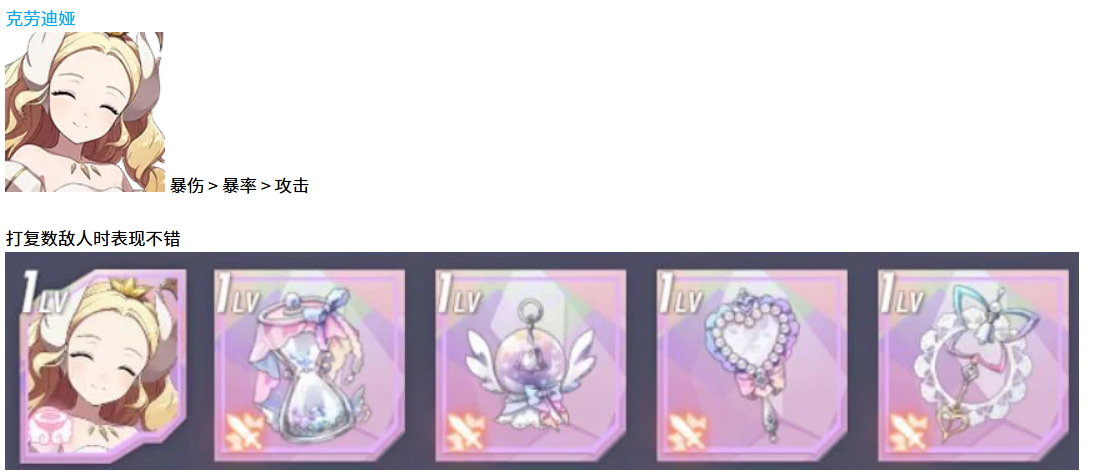 克劳迪娅则承担天使阵营中的爆发输出职能,尤其在应对复数目标时优势显著。其技能组具备明确的群体判定与暴击联动机制,因此暴击伤害为第一属性需求,暴击率为第二优先级,二者共同构成伤害倍率跃升的关键杠杆;基础攻击力仅作基础数值支撑,不建议过度堆叠。该配置逻辑已在高难度群怪副本与竞技场多目标对局中反复验证:当暴伤突破280%且暴击率稳定在65%以上时,其AOE段伤害峰值可提升近40%,远超同等资源投入下的攻击向配装收益。