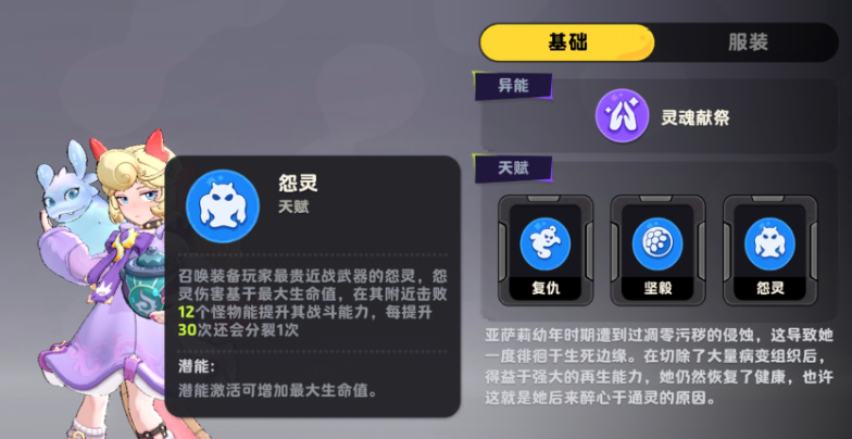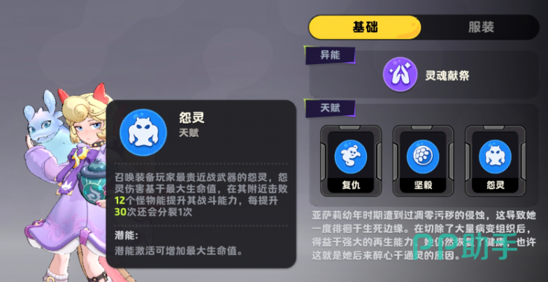 在召唤流构筑中,“怨灵”天赋是关键支点:其召唤物伤害基于亚萨莉最大生命值计算,且随击杀数提升战力——每击败12个敌人,即可获得一次属性强化;每累计30次攻击,还将额外分裂出一只新怨灵。配合近战武器加成,该体系可在中后期形成稳定、多线、高生存的输出矩阵,极大延展亚萨莉的战场控制半径与持续作战时间。