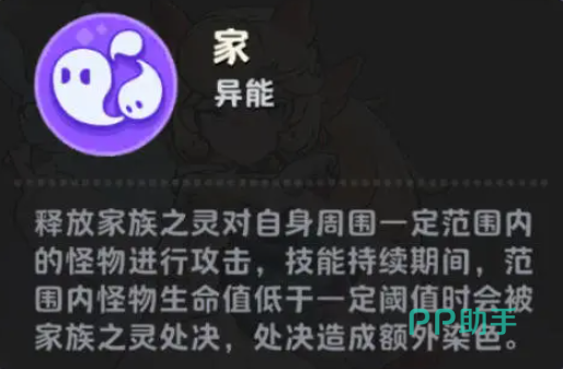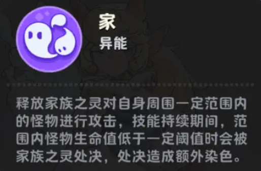 亚萨莉的核心输出机制围绕“异能·家族之灵”展开:开启后召唤灵体,持续对周围敌人造成范围伤害;当敌方单位生命值低于设定阈值时,将触发即死判定——该效果可无视常规抗性,实现高效处决。同时,该技能附带染色效果,进一步强化后续技能或队友的协同压制能力。这一机制使其在面对密集怪群、尤其是鼠帮收菜类快节奏关卡时具备天然优势——连败越久,其经济收益越可观,滚雪球能力越突出。