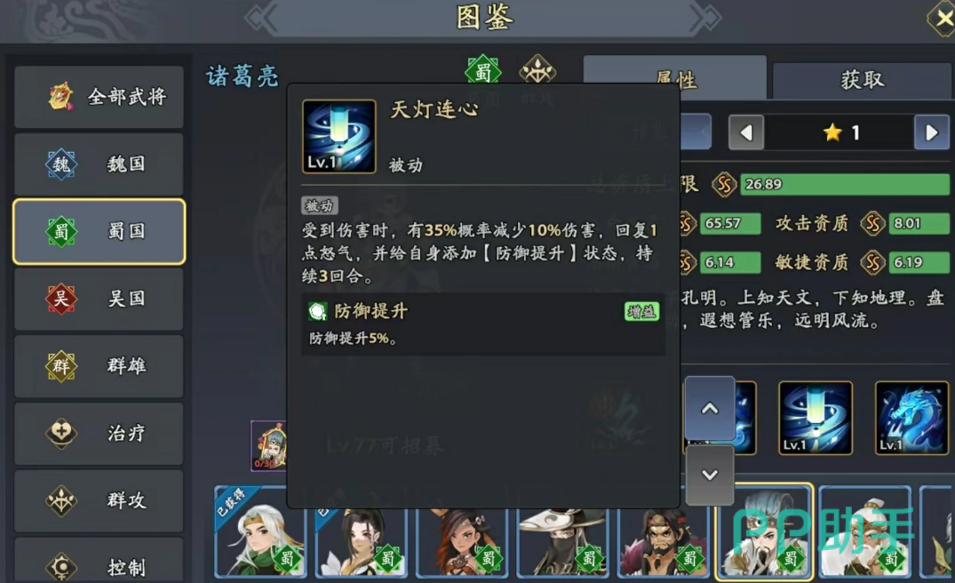第二个主动技能风卷云击则专注于单体打击,同样是远程释放,能够精准命中单一敌人并造成高额伤害,同样具备无视部分防御的效果,适合用于快速清除高威胁目标。第三个技能天灯连心为被动增益型技能,当诸葛亮受到攻击时,有一定几率减少所受伤害,并恢复少量怒气值,同时提升自身防御能力,此状态可持续三个回合,增强其战场生存性。