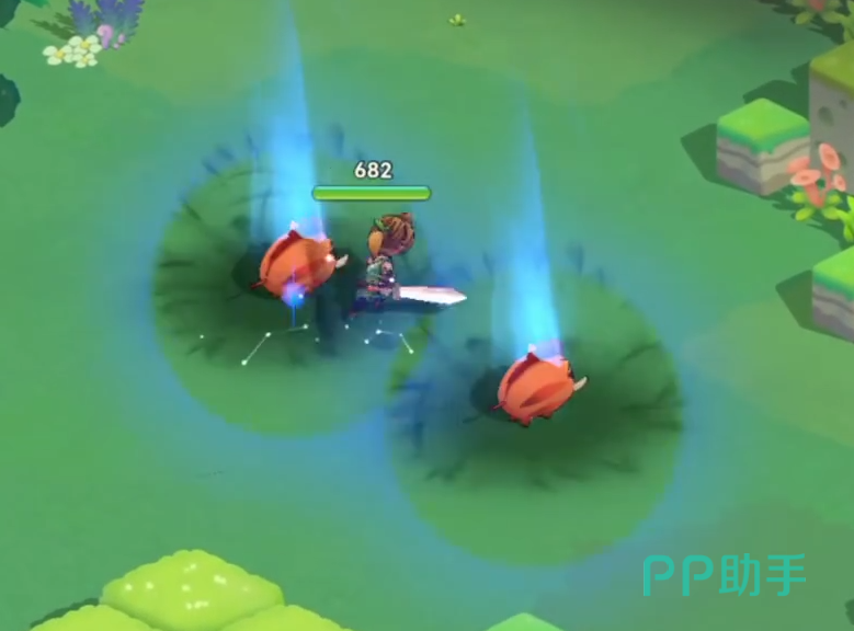 另一位推荐英雄是春芽,属于功能性辅助型角色。她的技能“治疗雨”不仅能为自身恢复生命值,还能对范围内敌人造成伤害并降低其移动速度,兼具回复与控场效果,实用性极高。