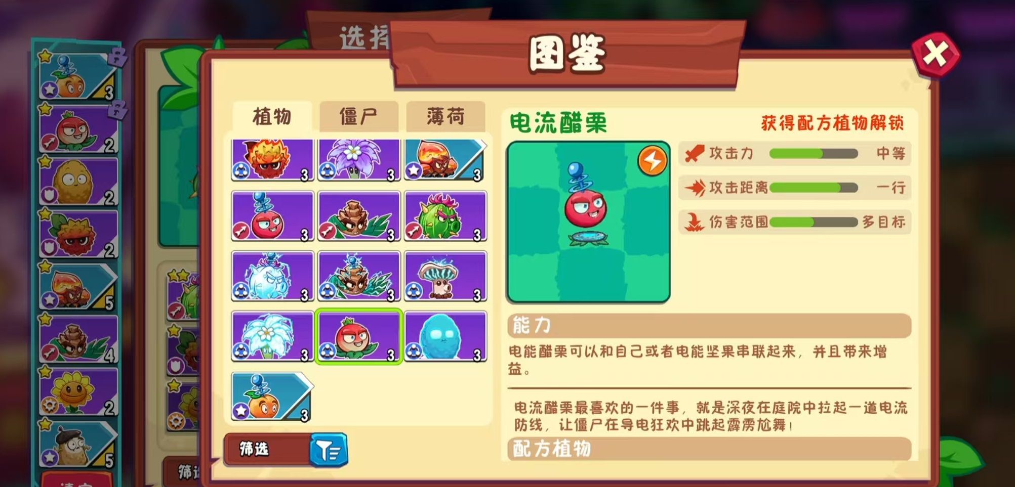 随着战局发展,醋栗投手可通过融合机制进化为更强形态。例如与脉冲黄桃融合后可获得电流醋栗,不仅输出能力大幅提升,还具备电能联动特性。当与电能坚果等具备导电功能的植物共存时,能够形成能量串联网络,在有电流供应的情况下获得额外攻速增益。命中目标时还会释放强化版电击伤害,进一步提升清场效率。布阵时建议将其置于生产类植物前方,避免被前排阻挡射程,从而最大化输出空间。