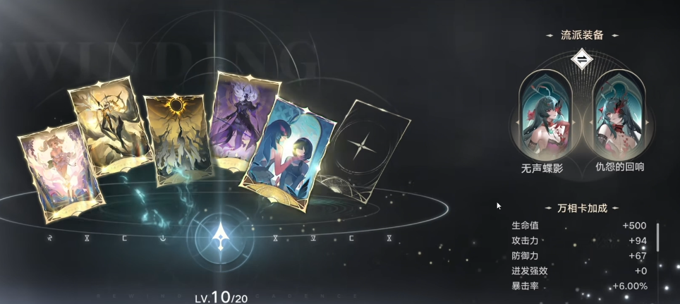 万相卡系统是流派构筑的关键延伸模块。该系统支持按流派智能匹配卡组,影狩流玩家在初期可直接采纳系统预设的“影狩·迅击”或“影狩·缚影”标准卡组,涵盖减抗、破防、链控等核心功能。随着角色等级提升与副本深入,建议逐步替换为高适配度的自定义组合,例如搭配“影蚀”“断隙”“千刃叠影”等专属卡牌,进一步放大控场衔接与伤害密度。