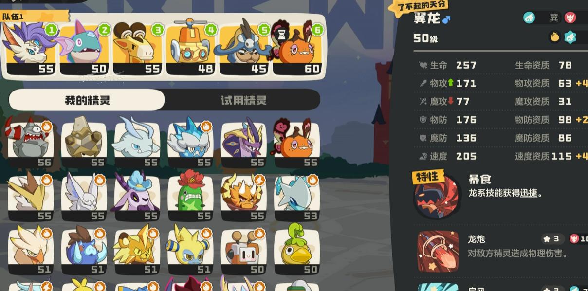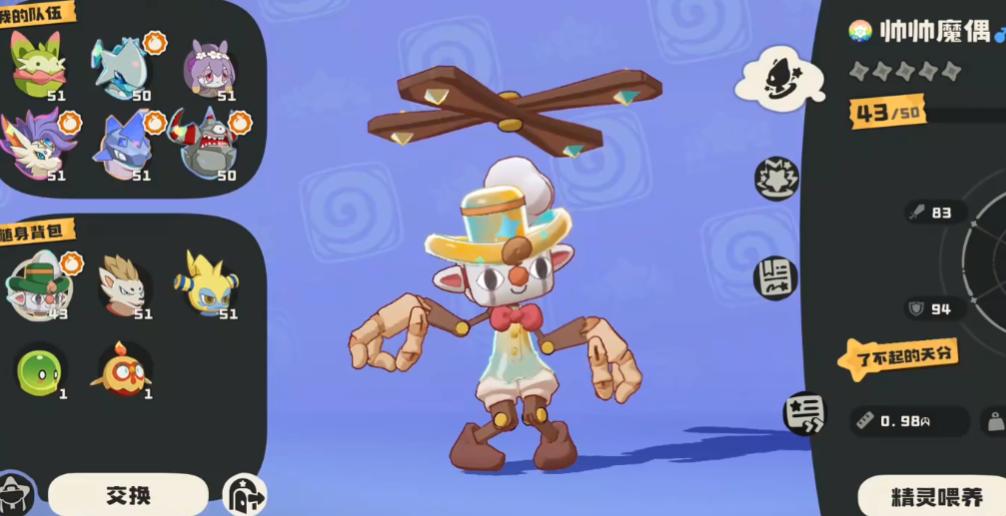 围绕帅帅魔偶的特性“复制队友强化”构建,属于典型的滚雪球式发育体系。队伍中需配置至少一名具备泥浆铠甲(减伤)、吸血续航或攻击增益类技能的辅助精灵,在前期多轮行动中持续叠加属性强化层数;待帅帅魔偶中后期入场时,即可同步继承全部增益效果,瞬间获得远超常规养成水平的属性面板。该配队对操作节奏有一定要求,但成型后单精灵推进能力极强,大幅降低组队复杂度。