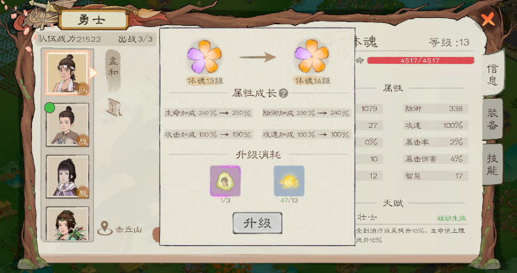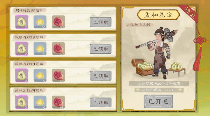 除了经验之外,勇士升级还需要消耗魂石,魂石的获取方式主要是通过陵鱼洞,每个礼拜可以抽6次,并且是有上限的,会在每周一进行重置,或者小伙伴们也可以直接前往一元商店来购买,另外一种道具是精魄,这个获得的途径会多一些,第1个方式是直接在商城里购买,第2个方式是从声望商城里消耗铜钱购买,第3个方式是每天晚上7点有概率刷新到神秘商人,也可以从他这里购买精魄。