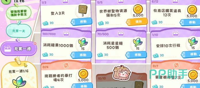 任务系统是糖果增长的核心引擎,但需讲究执行优先级。建议跳过耗时长、回报低的冗余任务,聚焦高效率动作:例如“商店购买道具12次”与“安排行程10次”,操作简单、无资源消耗,每次完成即获5000颗糖果及30个辅助道具;另如“挑战胜者的报答4次”“食堂用餐7次”等轻量挑战,步骤明确、无失败风险,同样稳定产出5000颗糖果。推荐执行顺序为——每日先清空零成本任务(商店+行程),再推进低门槛挑战,确保糖果收益最大化且不占用额外资源。