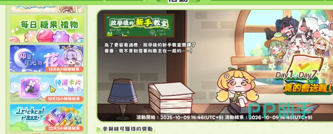 限时活动是新手期与日常阶段的关键增量来源。例如“放早恋新手教室”活动,参与每日签到即可领取糖果,连续签到7天除基础糖果外,还可获得限定道具与额外糖果加成;左侧栏常驻活动如“教主一起去吃”,仅需完成基础互动操作,单次奖励即达数十至数百颗糖果。此类活动普遍门槛极低、发放直接,且多为一次性机会,务必养成习惯:每日首次登录后,第一时间打开活动面板,逐项领取所有可得糖果,避免遗漏。