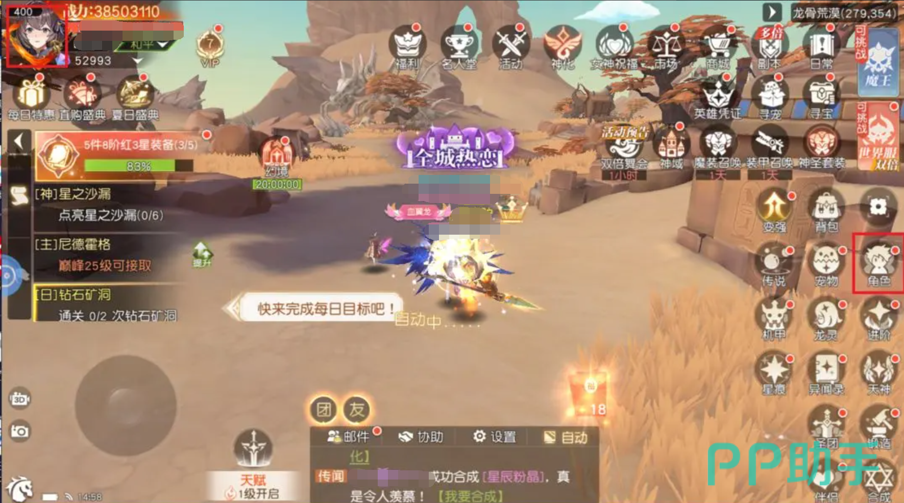 日常养成需严格遵循节奏:等级提升驱动玩法解锁,每日修行任务提供固定金币、经验与强化素材三重回报。坚持完成可形成稳定资源流,支撑中后期挑战高阶副本与世界Boss——此类内容掉落极品装备与稀有锻造材料,转售或自用均能显著优化经济结构。挂机功能宜在角色具备基础生存能力后启用,作为离线收益补充手段,而非前期主力。