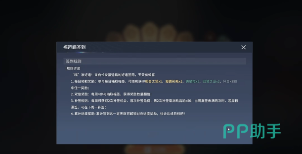除基础签到外,活动还设有两项进阶激励机制:其一为周四双倍签到日,当日所有奖励数量翻倍发放,相当于单日收益提升100%;其二为连续签到进度奖励,按累计天数分段解锁,包括但不限于稀有材料包、限定头像框及专属称号等高价值内容。进度节点明确、奖励梯度清晰,长期参与可实现资源复利式增长。