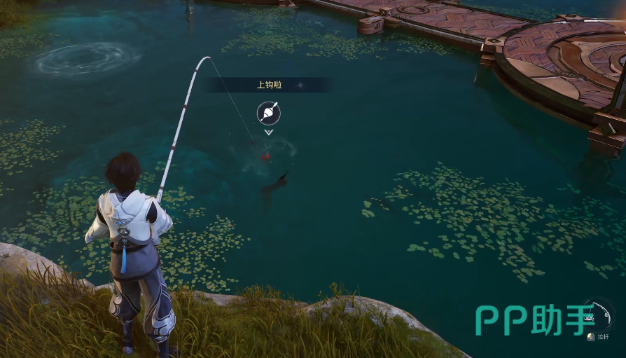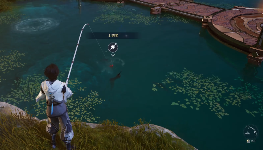 垂钓功能需完成前置场景解锁——玩家需抵达霜云镇,并前往镇内临水区域,与固定NPC“垂钓者”进行交互,即可激活该玩法。系统将自动发放基础鱼竿与鱼饵,无需额外购置或合成。操作时,玩家可在任意可钓鱼水域自由抛竿:先选定方向完成投掷,待浮标完全沉入水面之下,即表示有目标鱼类咬钩;随后观察水面波纹变化及鱼影跃动频率,在波动最剧烈的瞬间提竿,再依据鱼只挣扎力度适时收线,可显著提升成功率。初始阶段仅开放初级鱼竿,随进度推进,不同鱼种将对应特定钓点与专属装备,每次抛竿固定消耗1点精力值。