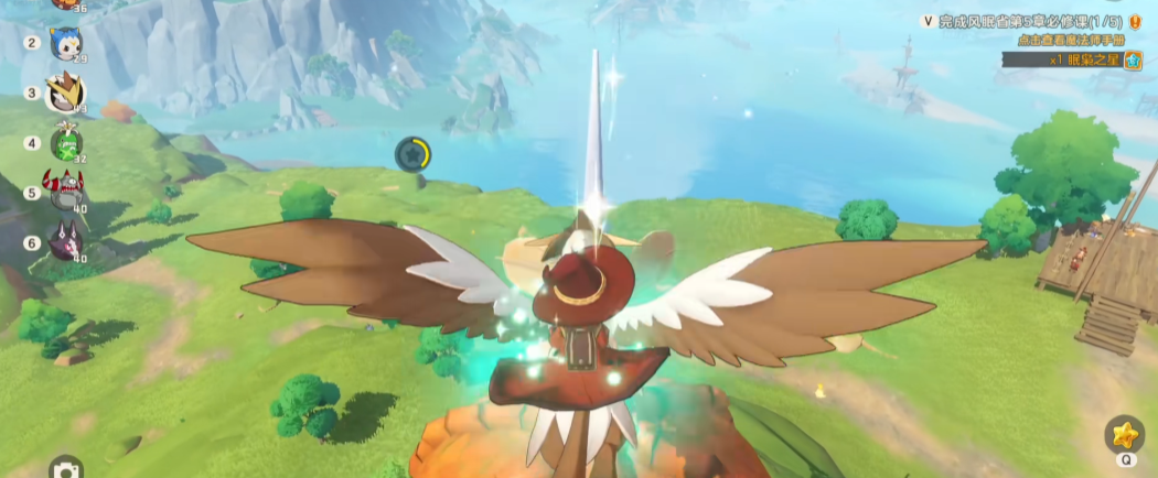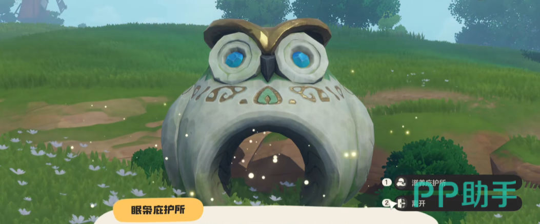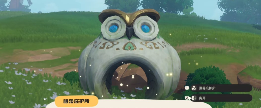 想要召唤水蓝蓝,首先需要使用精灵果实,而该道具必须放置在“眠枭庇护所”内才会触发精灵生成机制。眠枭庇护所的解锁依赖于大世界探索中的“眠枭之星”,这类资源通常散落在主地图各处,例如图示风车顶部就存在一个采集点。建议在日常跑图过程中留意环境细节,尽可能多地收集眠枭之星以解锁更多庇护所。