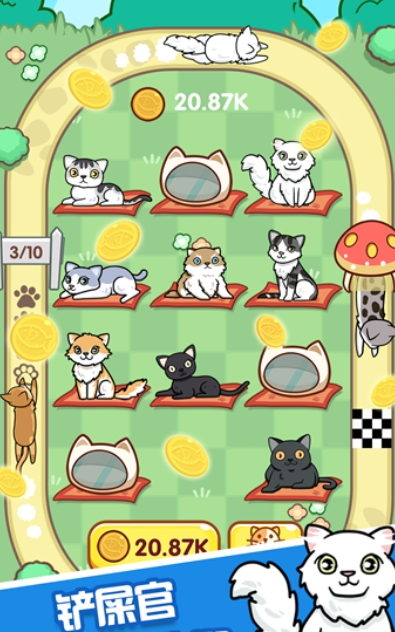 玩家将带领各种花色的小猫在充满挑战的跑酷场景中冒险,体验紧张刺激的节奏感。每只小猫都拥有独特的动态表现,奔跑时的动作流畅而生动,细节刻画细腻,令人爱不释手。游戏还引入了深度的养成系统。玩家可以通过合成机制,培育出稀有品种的猫咪,并为其建造专属的小屋。小屋的布置与升级不仅提升了猫咪的生活品质,也为玩家提供了丰富的自定义空间,营造出温馨治愈的游戏氛围。