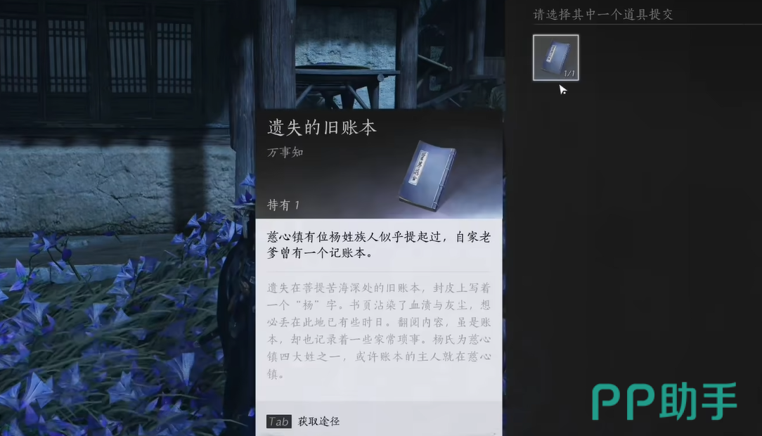 有了旧账本之后,接下来就得前往“慈光镇”了。镇上的风景如画,任务的目标是与杨一进行对话。在对话时,你需要将手中的旧账本交给杨一先。成功交付账本后,奖励也紧随其后。