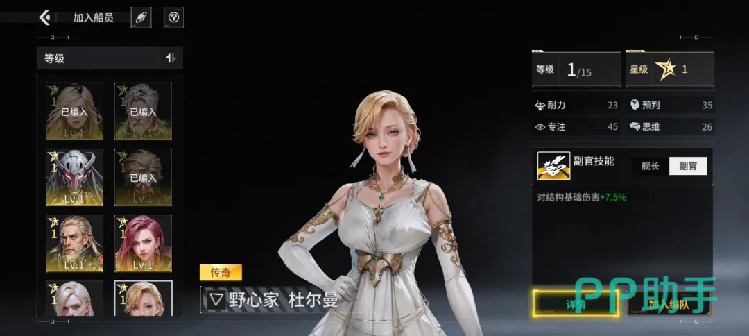 舰船编队槽位数量由母舰“指挥部”建筑等级决定:1级解锁3个位置,每提升2级新增1个,最高支持12舰同屏作战。进入船员详情页后,点击右上角“+”按钮可执行升级或升星操作。升级消耗道具为【作战数据】,按品质分为初级、中级、高级三类,分别提供100/300/800点经验;升星则需同名船员碎片,所有船员(含初始1级)均可升至满星(6星),每升1星激活1项被动属性增幅。