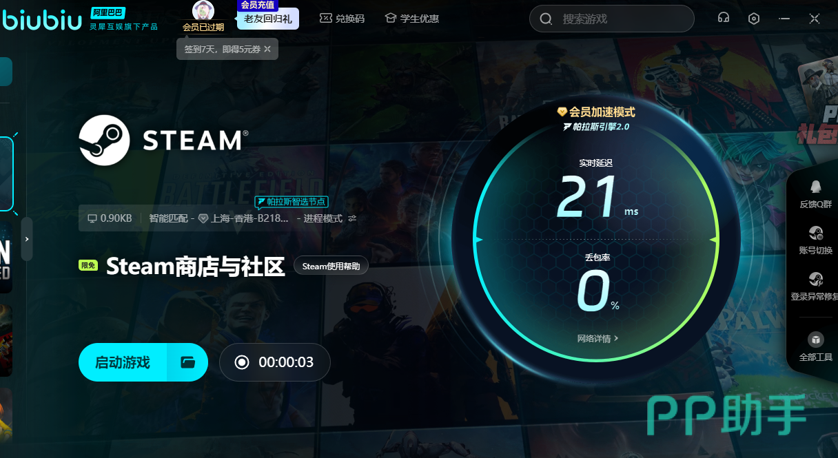而警区在steam中的名称实际上就是警区,大家无法搜索到可能是因为商店因为网络波动出现了无法打开的情况,这时通过使用加速工具就能完美解决这个问题,小编在进行多次尝试后,推荐朋友们使用拥有海量节点的biubiu加速器。可能有很多朋友们认为这类软件只是噱头,那这时biubiu推出的新用户注册免费领取24小时加速市场的福利就可以让朋友们先体验真实效果。如果觉得体验不过瘾,新老用户还能用【biubiu不卡顿】来获得3天的加速时间。