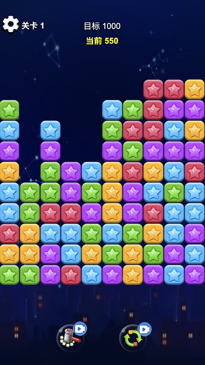 各种颜色的星星方块,玩家需要通过敏锐的观察力将颜色相同的方块进行合并移动,当他们处于临近状态时,就可以自动消除,消除的星星数量越多,那么我们将会获得更多的奖励和道具。在闯关的时候也能够提升速度,这款游戏是单机的,在操作时也不需要担心网速或者是卡顿的任何问题。