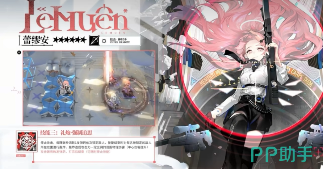 以上就是明日方舟蕾缪安介绍的内容了。蕾缪安是一名非常有策略性的干员,适合用来打击精英单位和领袖敌人。她不仅输出高效,技能灵活,还能在不同的战斗情境下展现出她的多样性。从单纯的精准打击到大范围的爆炸伤害,她的每个技能都能在关键时刻起到决定性的作用。
