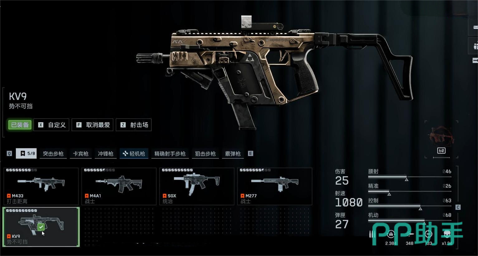 KV9位列第三,尽管默认弹匣容量偏小,但换取了更高的射击频率与单发杀伤力,中距离作战时仅需命中5至6发即可击倒对手。该枪虽有续航短板,但经过简单练习即可掌握压枪技巧,上手门槛不高。搭配扩容弹匣或其他优化配件后,续航问题得以缓解,整体短板几乎被完全弥补。