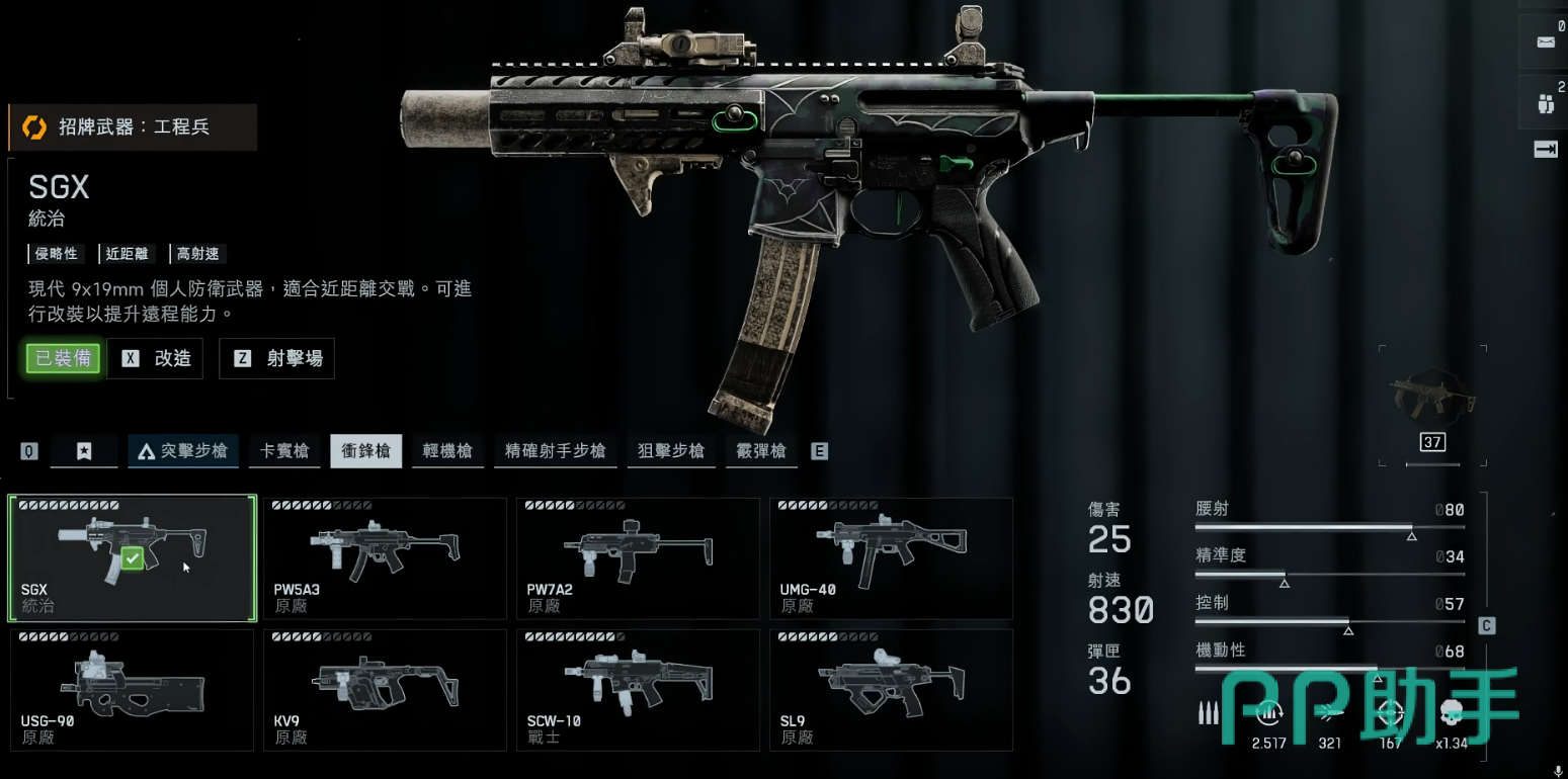 首推SGX,基础伤害为25,射速高达830RPM,在近距离交战中具备极强的爆发能力。通过合理的配件改装,还能有效提升中远距离的稳定性与命中率,使其适应多种战斗环境,堪称全能型冲锋枪,非常适合应对各类常规对局。第二款推荐的是SCW-10,外观低调且弹匣容量较小,容易被忽视,但其优势在于25米内可维持每发25点伤害,并拥有极低的后坐力反馈,配合800RPM的高射速,实现精准点射,控枪难度极低,实战中表现出色。