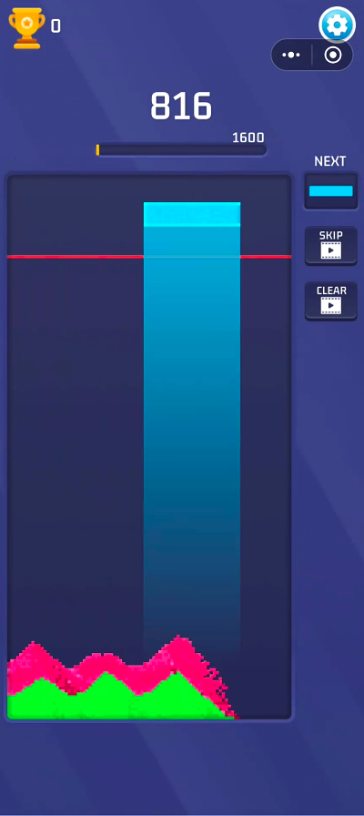 区别于市面上多数方块类衍生作品,《俄罗斯流沙》在底层规则上实现了结构性突破:采用横向三槽位布局,引入“流沙下落”动态模型,并绑定颜色识别逻辑——当红、黄、蓝、绿四种基础色方块落入同一行对应槽位时,触发自动消除并激活Blast特效,同步完成得分累加。该机制既保留了操作反馈的即时性,又强化了空间预判与节奏把控的策略维度。