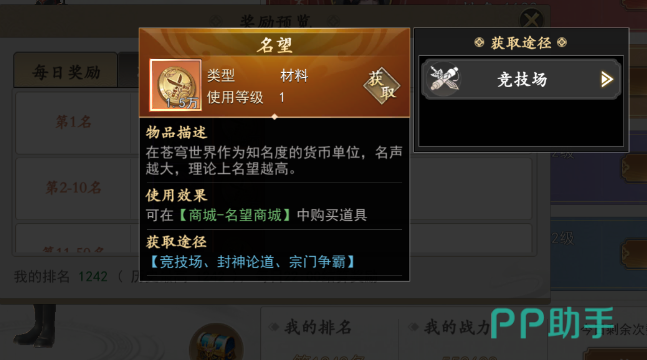 这个玩法是推荐每一个玩家都去进行参与的!同时还开设了十分有意思的竞技玩法!竞技玩法分成了两种,第一种就是普通的竞技场玩法,每天都可以挑战五次,而且是在晚上的10点按照排名来进行结算!获得第一的玩家是可以在本次玩法中领取到1.5w的声望奖励的!