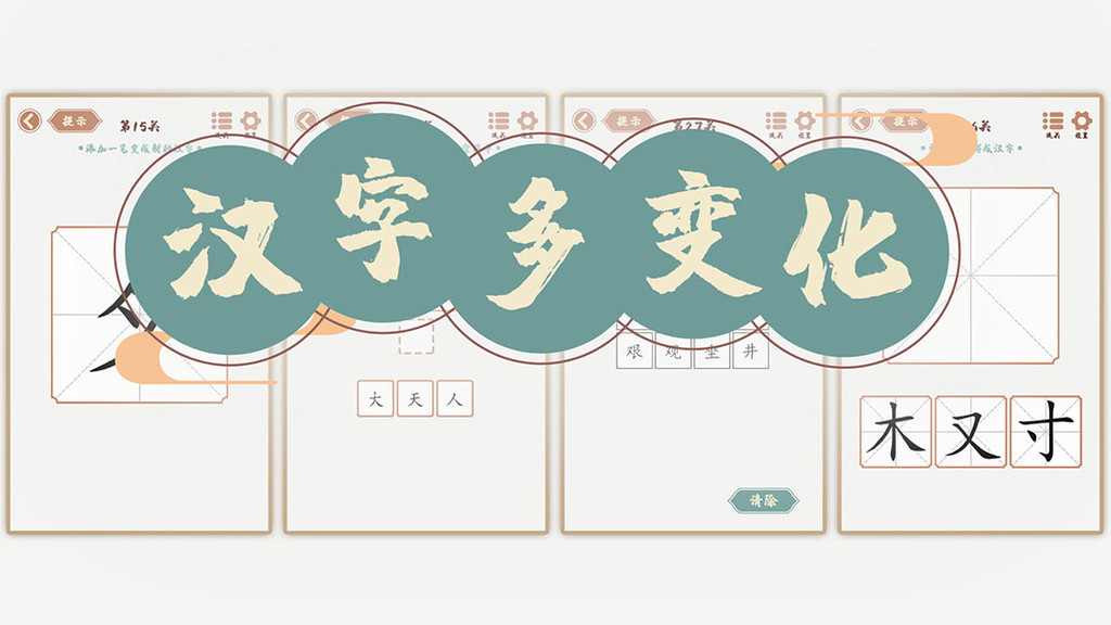 游戏从基础的字形逐步调整到复杂的生僻字,循序渐进的难度设计确保小伙伴们持续保持挑战新鲜感,关卡是越玩越刺激,在玩的时候要仔细的观察每个汉字的结构,通过加一笔和改一笔让它变身薪资,每一次成功变形都会引出字形的演变或者组合的动画,这比抄写也更容易记住形近字,是一个非常方便学汉字的游戏。