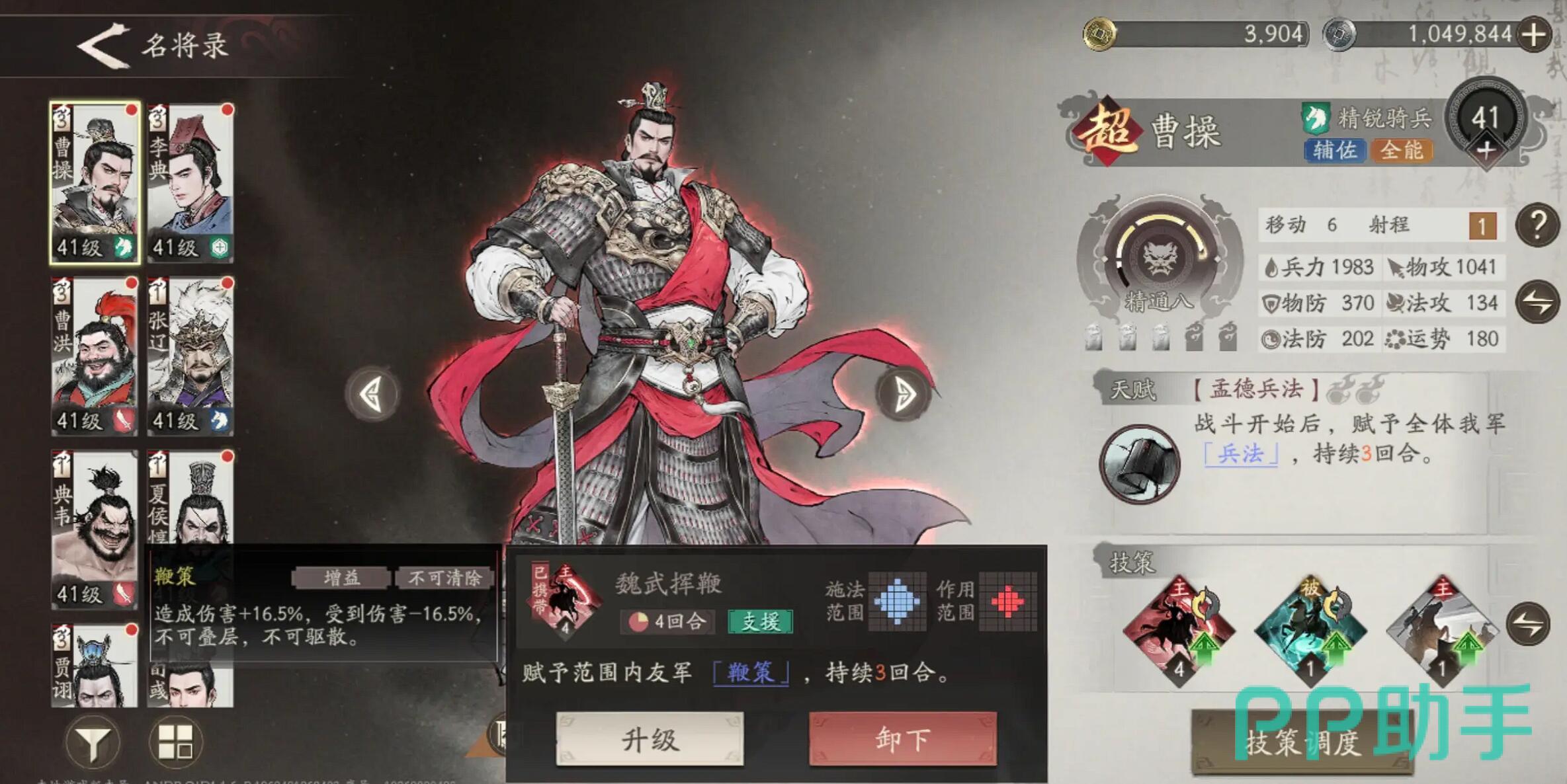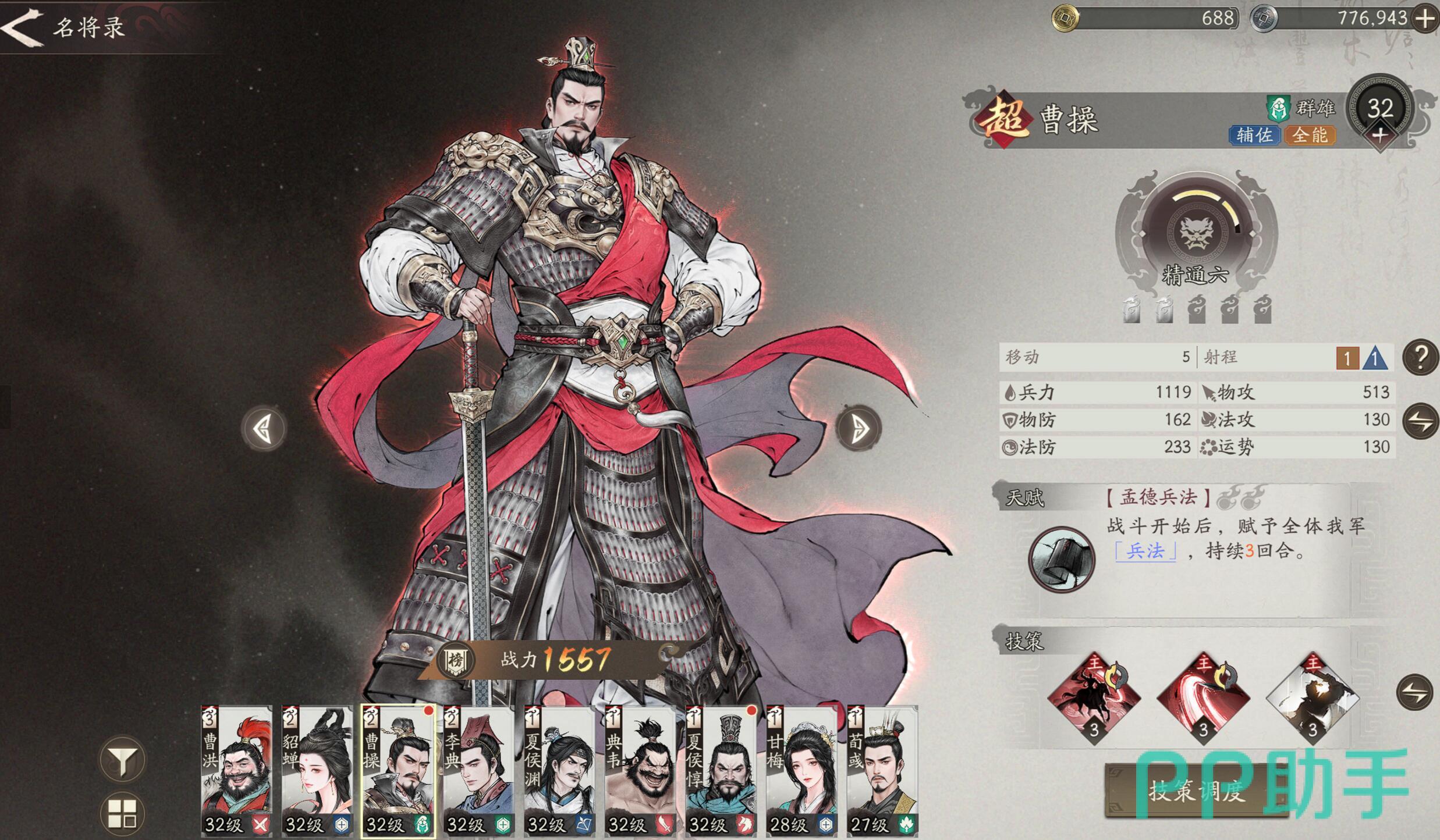 总体而言,曹操开局应充分利用系统赠送武将快速组建战力,依托“魏武挥鞭”与“天下归心”强化团队输出与生存能力,资源优先集中培养曹操与夏侯惇。战斗中需时刻关注曹操血量不低于30%,否则将导致光环失效。操作上建议手动控制,优先保障治疗,若暂无卞氏可用韩浩过渡,其攻击附带8%破甲效果。在“火烧濮阳”等关键关卡中,携带“猛火计”奇谋可对吕布造成高达50%的最大生命值伤害,实现高效斩杀。尽管该阵容无需抽卡支持,但对分兵调度与技能释放时机有一定操作要求,建议玩家多加练习,深入理解战棋机制以提升通关效率。