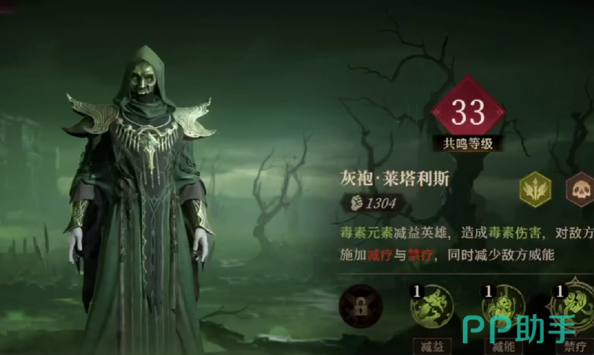 灰袍在游戏当中属于一个毒属性的辅助类角色,他可以对敌人造成减疗效果以及禁疗效果,并且极大程度的降低敌方威能,该角色是中流砥柱的角色。