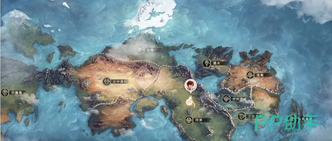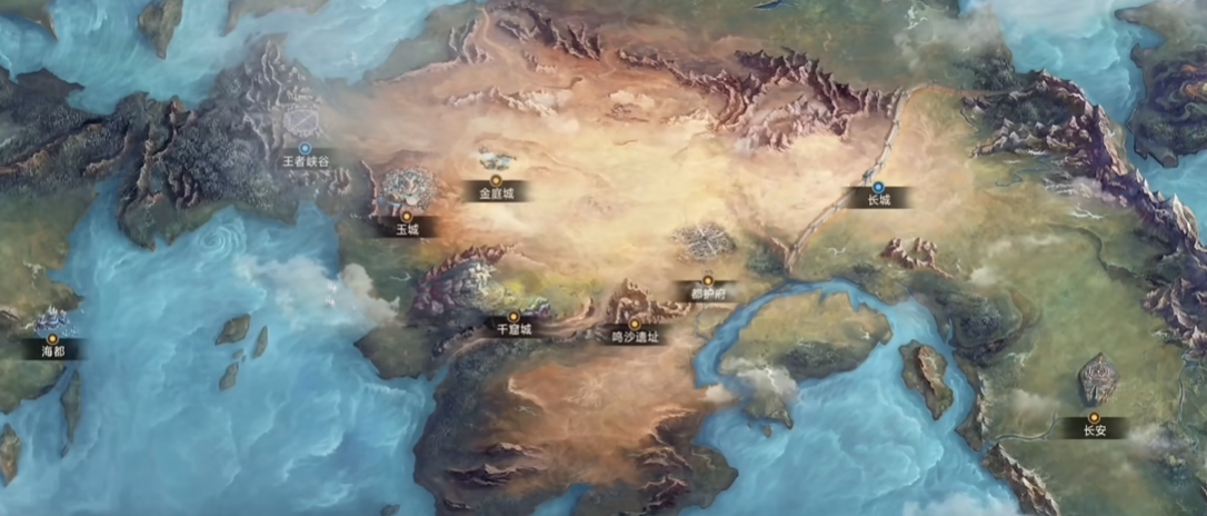 除长安外,中部还涵盖“稷下”与“云中漠地”两大特色区域,分别代表学术圣地与边塞风貌。西部与北部则进一步拓展世界观边界:西北侧为“日落海”,定位海洋城邦,采用西方奇幻设定,核心包括海都、日落圣殿及王者峡谷;正北方向为“北荒”,覆盖冰原与荒漠地貌,气候严寒;而“云梦泽”位于稷下以南,属典型沼泽湿地生态,水网密布、雾气氤氲。