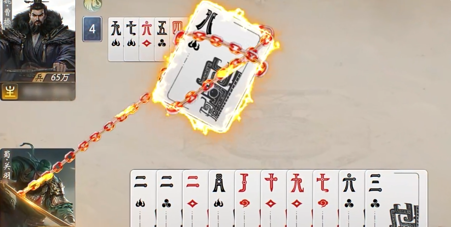 每位登场武将都具备专属能力,合理把握释放时机能极大影响战局走向。例如关羽在长蛇阵中打出顺子时,可获得一张万能牌,若再配合赤兔马效果,即便缺少一张牌也能完成五连组合;
