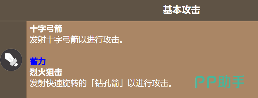 基础普攻采用十字弩发射机制,攻速适中,清杂兵效率良好。核心输出技能为钻孔箭:需手动长按蓄力,蓄力时间越久,箭矢旋转速度越快,命中后基础伤害越高;同时,满蓄力命中可直接消耗全部火花并立即激活烈焰附体。实战中建议结合敌人位移规律预判释放,优先保障满蓄力命中率,以最大化连招流畅度。