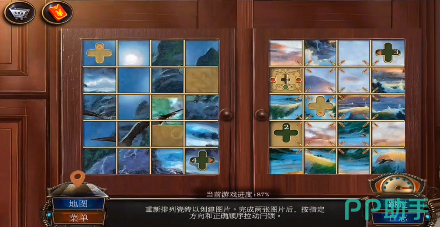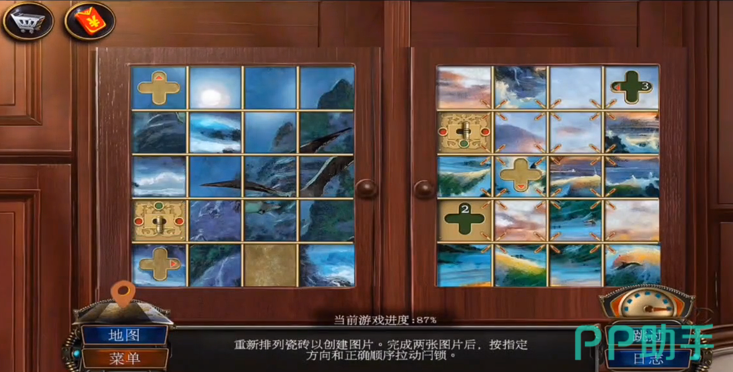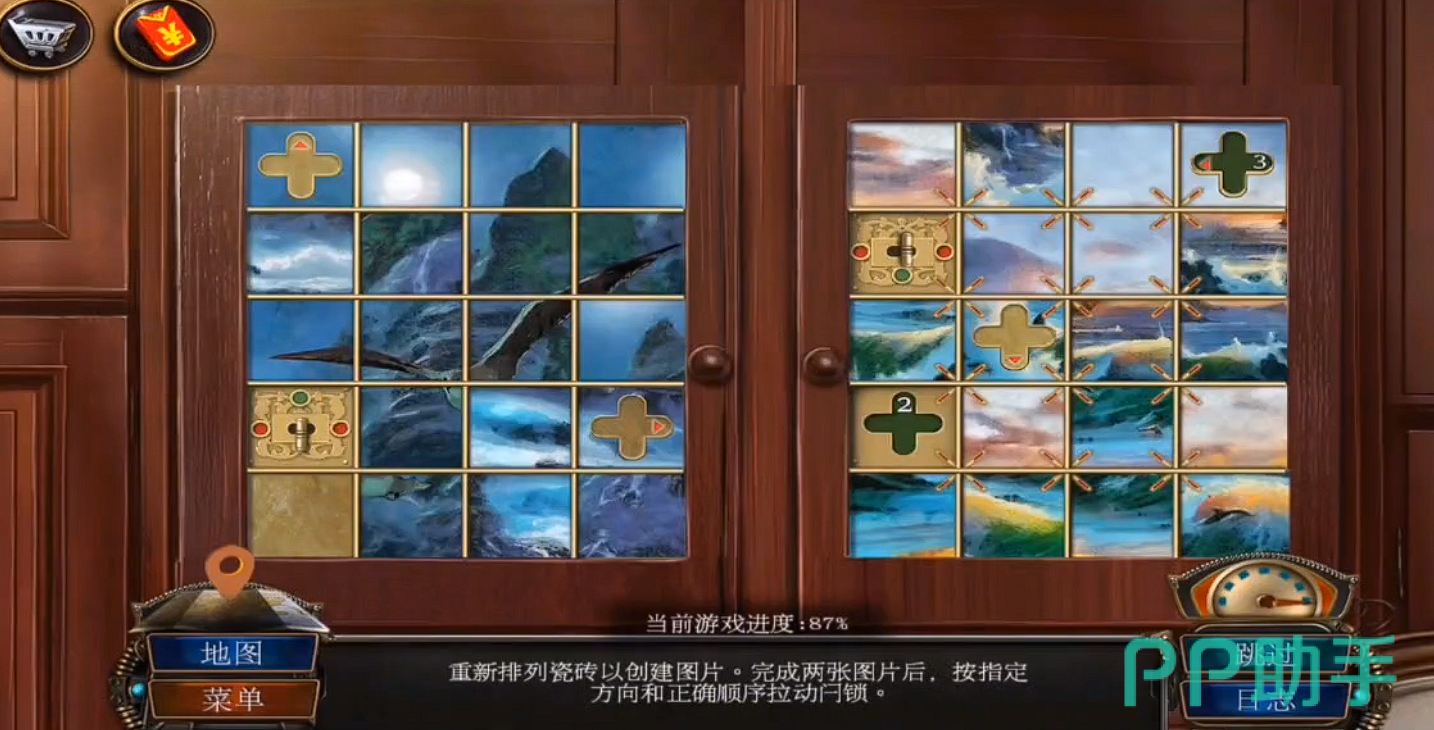 当玩家拼接出大部分瓷砖后,剩下的部分就相对容易了。这时只需根据剩余空白的形状和大小,以及剩余瓷砖碎片的边缘和图案,就可以迅速将它们放到正确的位置。当所有瓷砖碎片都正确拼接在一起后,玩家将解开这一谜题,并且通常会发现一个隐藏的线索或物品,这将帮助玩家继续游戏的冒险。只要大家够耐心、够细心就可以顺利解开谜题。