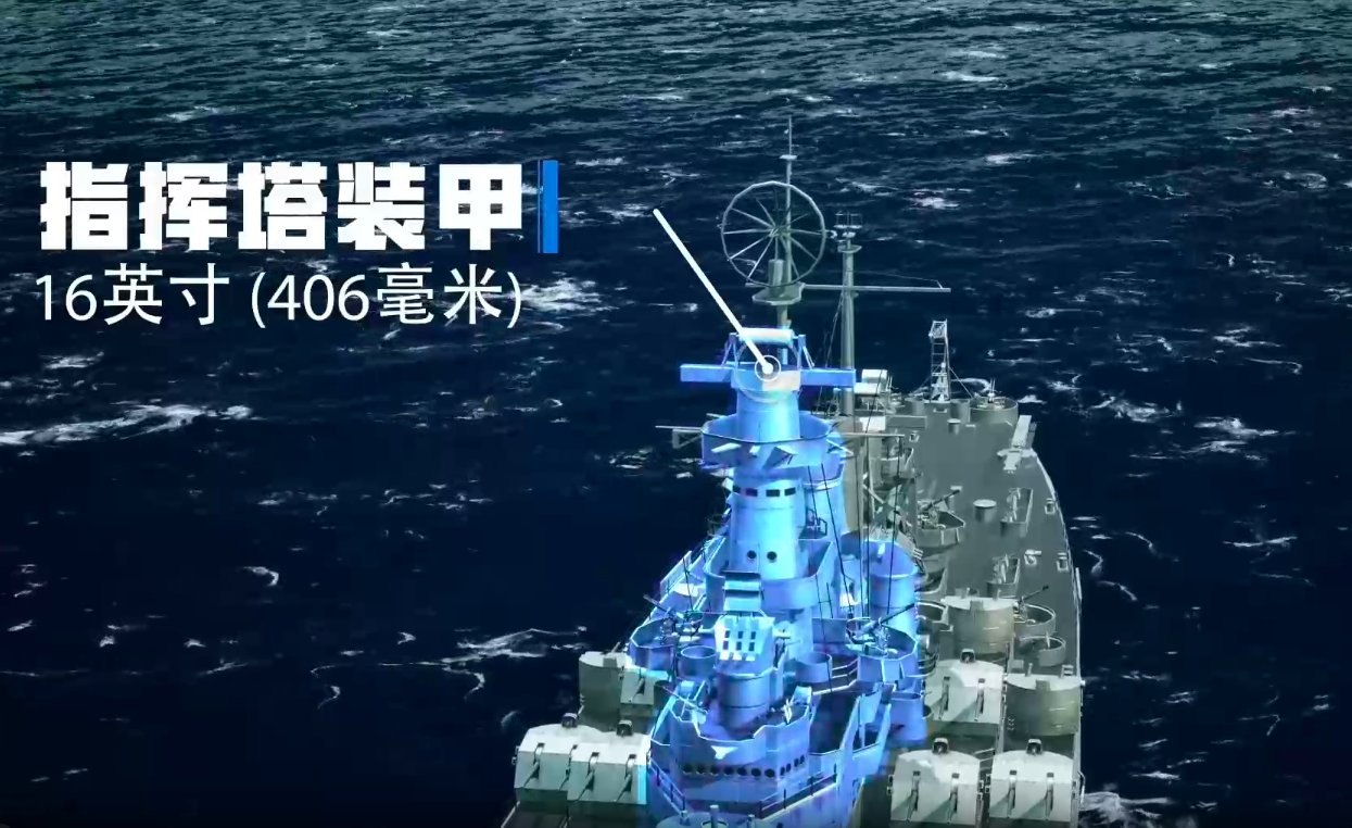 指挥塔作为全舰作战中枢,装甲厚度达406毫米,不仅直接保护舰桥人员与火控设备,更确保雷达探测系统在高强度交火中持续稳定运行,为远程索敌、目标分配及防空引导提供可靠硬件支撑。
