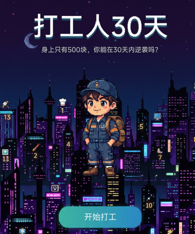 核心玩法围绕“30天生存挑战”展开:玩家必须在限定周期内通过工作赚取收入、支付房租与日常开销,并逐步积累资本。初始可选岗位有限,需结合 hourly 薪资、通勤耗时、体力消耗等维度综合评估,制定每日行程策略。