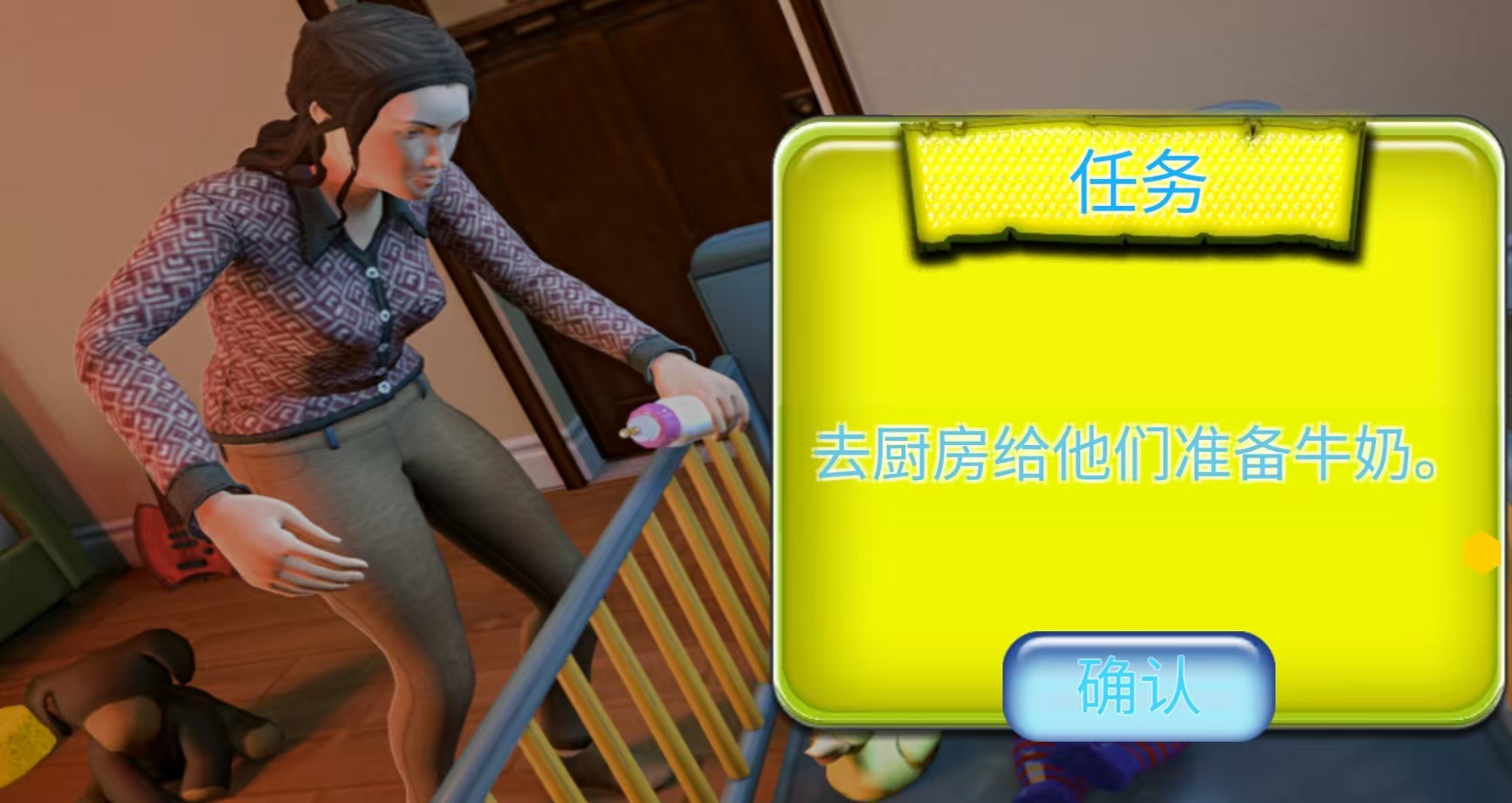 《真实母亲模拟器》玩家需要扮演的身份是一名母亲,需要去照顾一个很小的宝宝,照顾好家庭中的日常起居。游戏里面发布了很多需要完成的任务,会把玩家带到一个家庭中,帮助小宝宝换尿布,陪他玩耍,给他冲奶粉等。还需要和自己的邻居处理好关系,也可以去邀请邻居到家里来做客,需要做起一个全职妈妈的身份,会间接的体会到从中的辛苦和不容易。