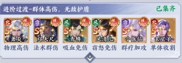 【双核爆发流】萧炎+邙天尺+青鳞+小医仙+玄空子+凤清儿 此阵容强调短时极限输出与战局终结效率。萧炎担当物理主C,邙天尺则负责法术范围压制,二者形成双轨伤害结构,实现多维打击覆盖;青鳞通过吸血与免伤特性保障自身站桩输出能力;小医仙提供群体治疗与辅助增益,提升全队容错率;玄空子专精单体收割,于群体伤害后迅速补刀残血目标;凤清儿补充元素克制与状态干扰能力。该配置适用于限时活动、高难首领战等需快速结束战斗的场景。