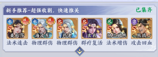 【水法速推流】美杜莎+海波东+药老+纳兰嫣然+熊战+玄衣 该阵容以高频法术连击为核心机制,美杜莎作为水系主C,在单回合内可多次触发技能,持续制造高额AOE伤害;海波东承担物理群攻职能,快速清减敌方前排单位;药老同步提供物理范围输出,与海波东构成双物理压制链,高效压低敌方整体血量;纳兰嫣然赋予全队法术增伤光环,显著放大美杜莎的技能倍率。熊战与玄衣分别补充控制与生存韧性,保障输出环境稳定。此配置特别适合新手期快速积累金币、经验与突破材料,实现战力早期跃升。