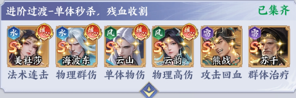 【单核斩杀流】美杜莎+云山+海波东+云韵+苏千+熊战 本套方案聚焦中段PVE与PVP场景下的精准打击能力。美杜莎维持法术连击频率,持续施加群体压力;海波东继续执行前排清理任务,为高价值目标创造输出窗口;云山定位为物理单体伤害上限角色,具备锁定敌方核心输出位并实现一击致残/秒杀的能力;云韵紧随其后,凭借高物理爆发完成残血收割,扩大击杀收益;苏千提供怒气转化与减伤支援,熊战强化控场稳定性。整套组合兼顾爆发、衔接与容错,适用于竞技场对抗与精英BOSS挑战。