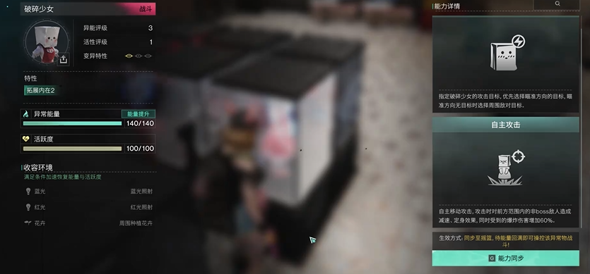 那么,为什么这么多人都在拼命刷破碎少女呢?这个异常物的战斗加成实在不容小觑。破碎少女不仅能够主动攻击敌人,还能对非BOSS敌人造成减速和定身效果,简直是个高效的控制利器。而且,它还能提升敌人所受到的爆炸伤害40%,这对于提高战斗输出极为关键。因此,能拥有破碎少女的玩家,在战斗中基本上能够占据上风,尤其是在面对大量敌人时,它的效果更为显著。