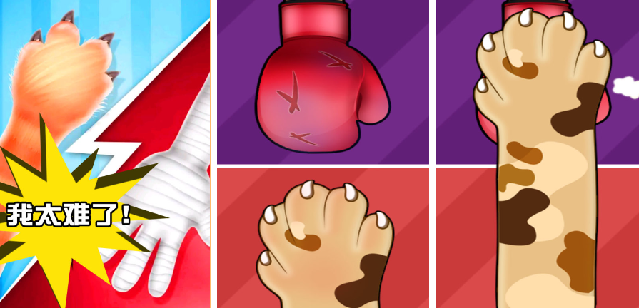 这款游戏是同屏双人游戏,游戏比的是玩家和朋友间谁的手速更快,卡通的游戏设计画风更为简洁休闲,只需点击屏幕互相拼手速就可,手速越快,那么屏幕占比就会越大,直到将整个屏幕都收入囊中,就代表赢下本局游戏胜利,还有休闲猫爪玩法,这种玩法比的是伸手缩手速度,躲避敌方抓取后,轮到几方伸手去抓时,抓到就算胜利。