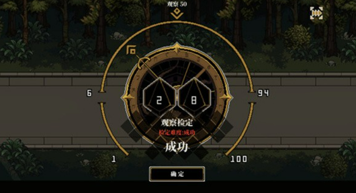 游戏采用经典骰子检定机制,高度还原TRPG沉浸式体验。每次行动均需掷骰判定结果,成功等级分为普通成功、困难成功(技能点数达一半)、极难成功(技能点数达五分之一)三档。失败时呈现红色触手特效,成功则触发金色箭头反馈,视觉表现层次分明。值得注意的是,部分失败判定可激活隐藏分支事件,推动剧情向非线性方向延展,显著提升探索容错率与叙事张力。