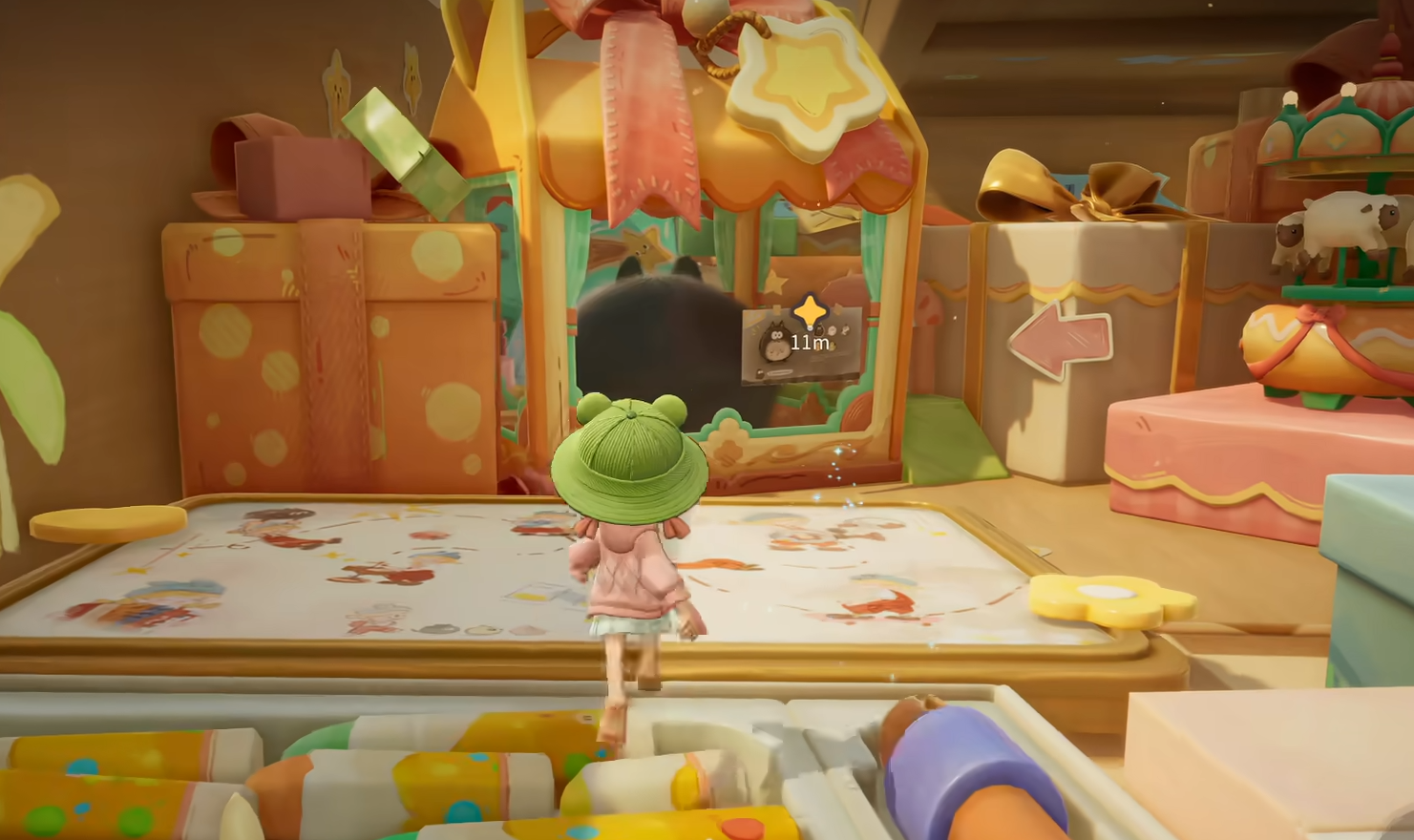 值得注意的是,在微缩视角下,环境物体被显著放大——例如普通纸牌可搭建为休憩帐篷。因此,捏脸时适当调大眼睛与嘴巴的比例,有助于提升远景交互中的表情辨识度与角色亲和力,使整体形象在各类场景中始终保持鲜活灵动。